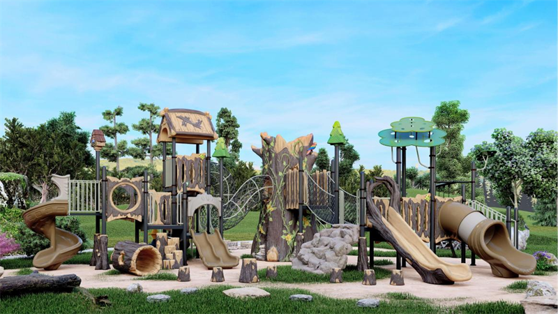 1、組合滑梯:含戶外大型款式,采用安全環(huán)保材料(如創(chuàng)新復(fù)合材料),適配幼兒園、社區(qū)、文旅場景,部分可融合自然景觀。
